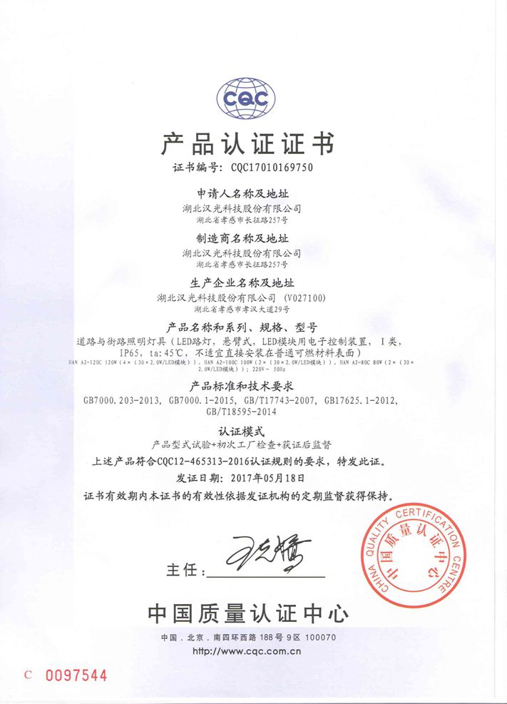 • 質量管理體系證書
